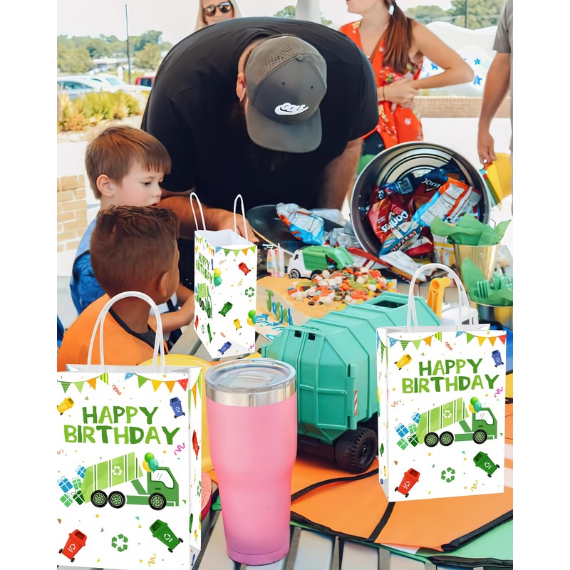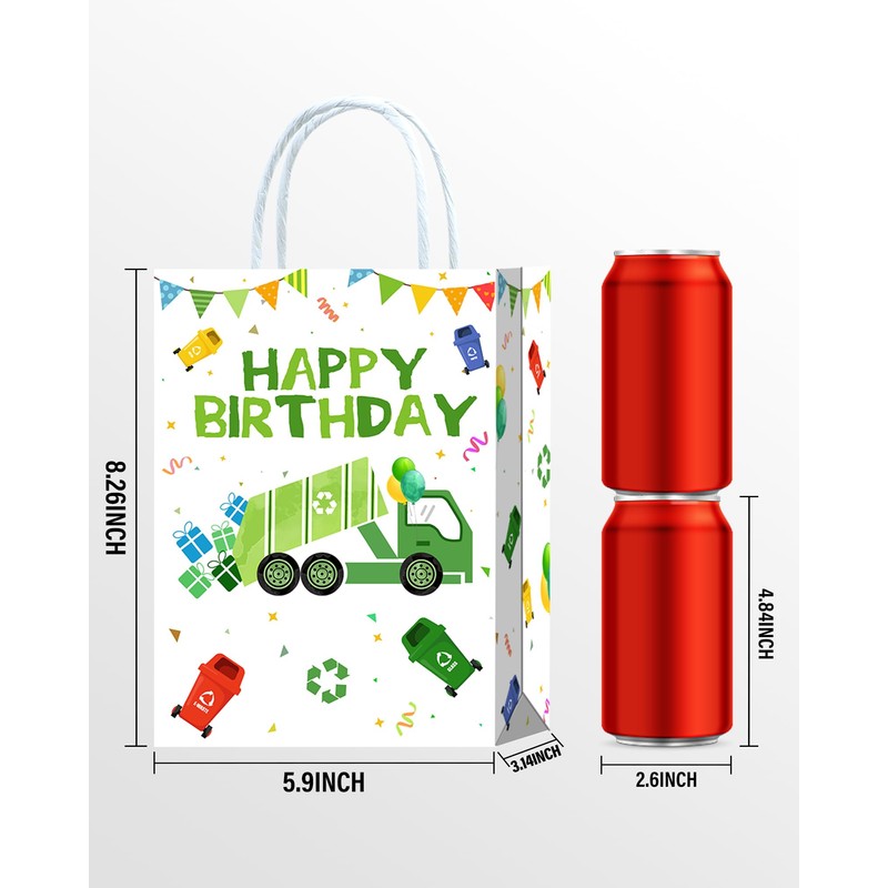 - You Will Get 16 Pieces of Garbage Truck Theme Happy Birthday Print Paper Goodie Bags With Handles,Which is Perfect for a Trash Truck Theme Birthday Party to Put Whatever Gifts and Souvenirs for The Party Guests