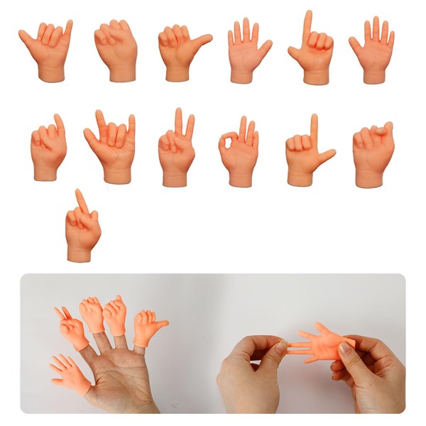 16 Pcs Mini Tiny Hands for Cats & Pranks, Stretchable Soft Finger Puppets, Funny Realistic Little Hands for Gag Gifts & Party Favors