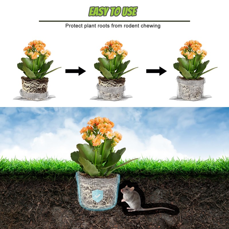 - USE GUIDE: Once you receive your plant nets, use the included gloves to prop them up. Then, take them to the place where you planted your plants and dig up the plants you need to protect. Dig a hole, place the root netting basket in the hole, add the plant roots after placing some soil at the bottom and on the walls of the netting, fill the remaining hole with soil, and you're finished