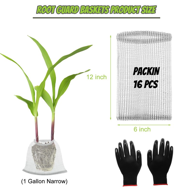 - PACKAGING DETAILS: You will receive 16 pcs 1 gallon (narrow) stainless steel plant root mesh baskets, and 1 pair of gardening gloves