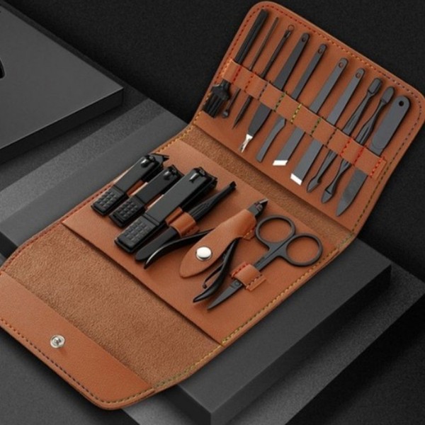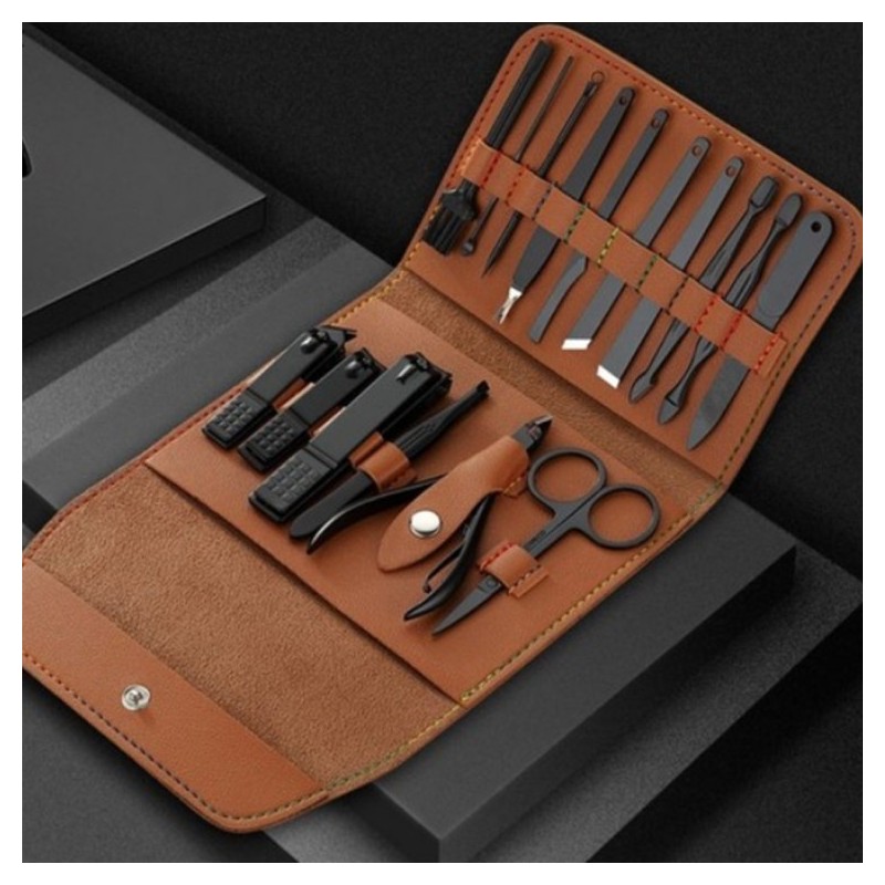 16-piece leather nail clipper set, brown