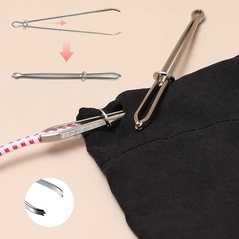 - 【How to Use】Simply thread the string into proper threader needle hole and fix it, then pull threader through casing to make the drawstring pass through completely. And you can use metal drawstring threader for different situations.