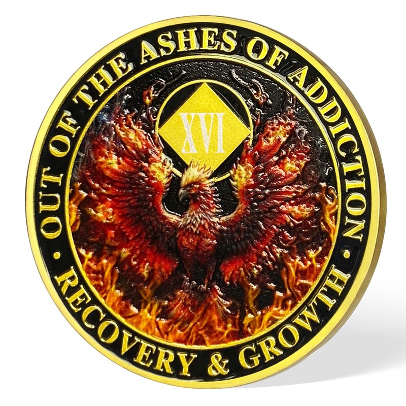 - 🌄Premium Craftsmanship: This 16 Year NA Medallion featuring a Fiery Phoenix is more than just a token; it's a symbol of strength and hope for those overcoming addiction. Crafted with meticulous attention to detail, this NA Recovery Coin features a striking 3D texture, offering a satisfying tactile experience. Made with quality materials, it’s the ideal commemorative coin for celebrating clean time.