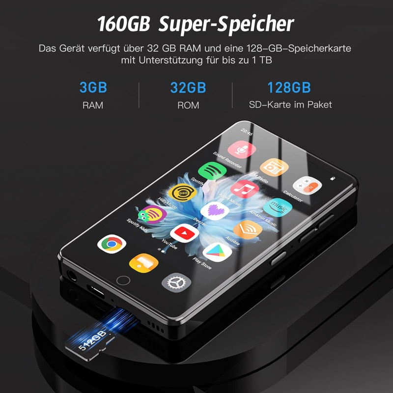 160 GB MP3 Player with Bluetooth and WiFi, 4.02 Inch IPS HD MP4 Player with Android 13 OS