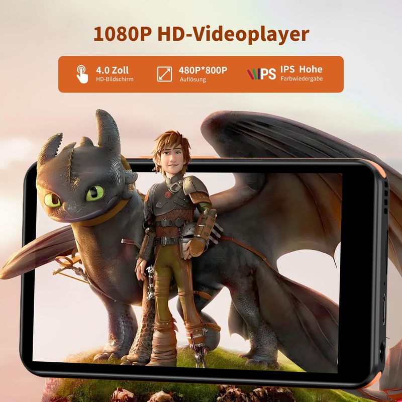 - Excellent image for MP4 players: This WiFi MP4 player has a 4 inch HD touch screen with exceptional screen resolution that brings every detail of your favourite movies, videos and photos to life with crystal clear clarity. Supports video formats such as RM、RMVB、FLV、MP4、DAT、MKV、MPG、MOV、TS and so on, can be played directly without conversion, bringing you an unparalleled viewing experience.