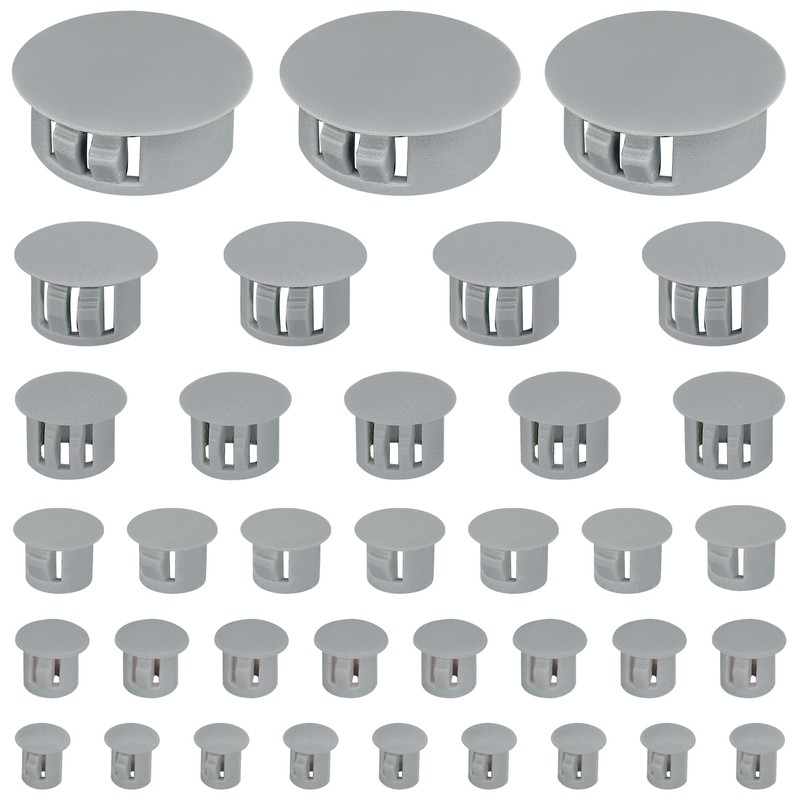 160 PCS Plastic Hole Plug Set - Snap-In Locking Caps in Assorted Sizes (Grey)