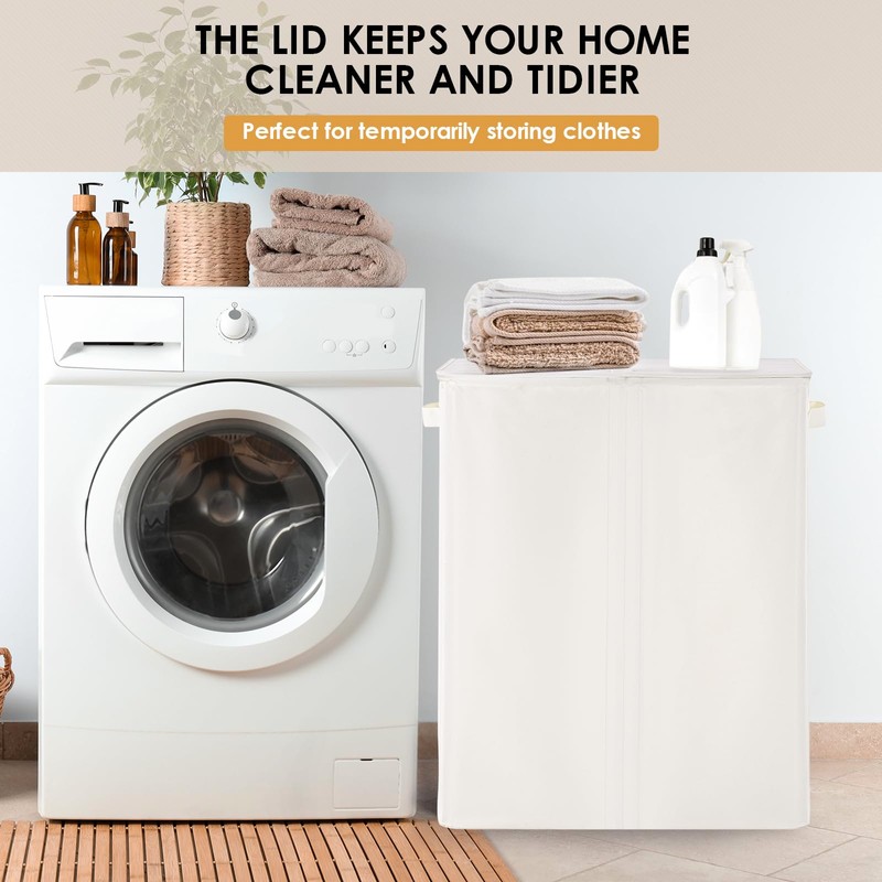 - Your Home’s Versatile Companion: With a massive 135L capacity, our laundry basket with lid is perfect for family use. This tall laundry hamper measures 23.2'' x 14.6'' x 27.2''. Keeping your space tidy and organized effortlessly