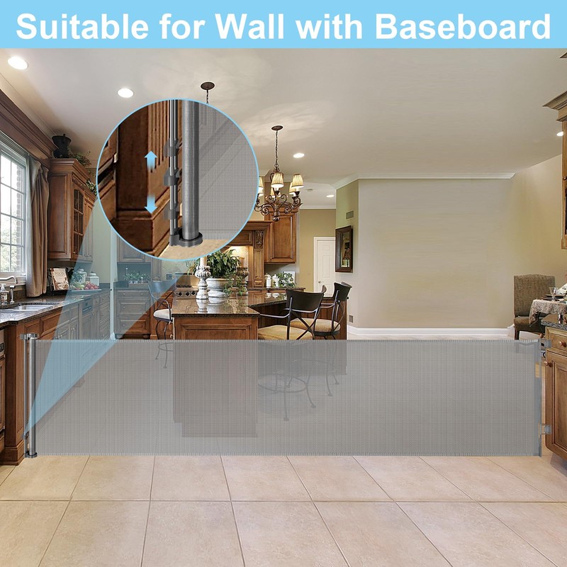 - Versatile Retractable Gate : extra wide retractable baby gates can be used as room dividers to create a flexible area for you or your children and pets, and can also be used as an alternative to a dog crate.