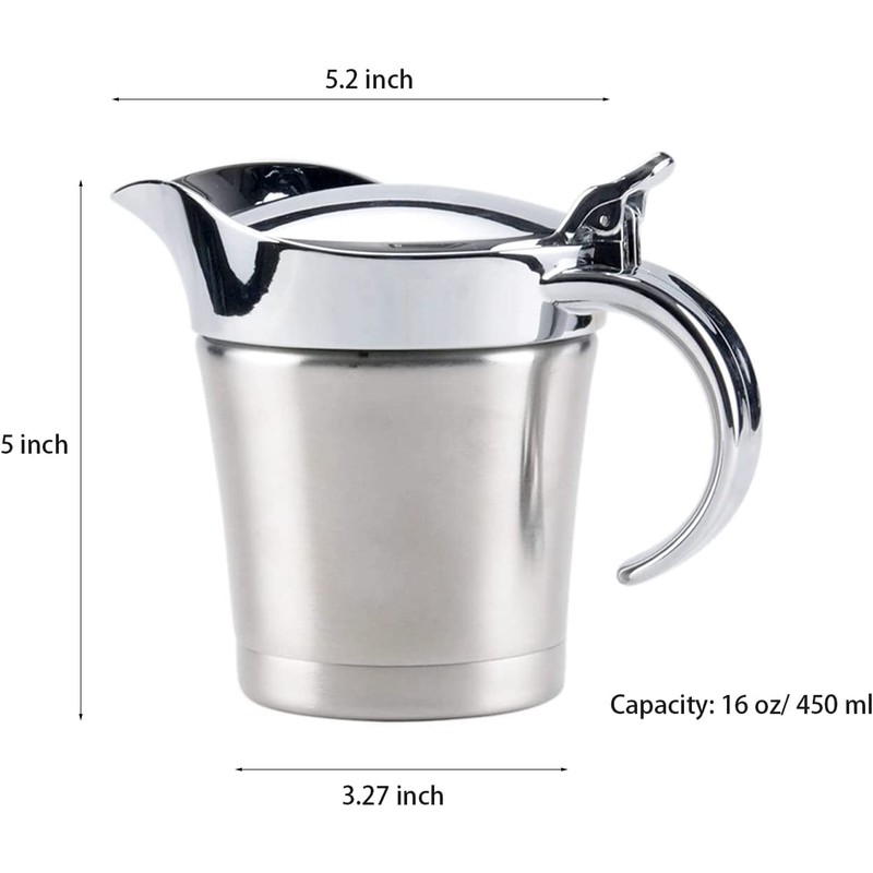 16OZ Gravy Boat Stainless Steel Gravy Warmer Serving Sauce Jug with Lid (16OZ/450ml)