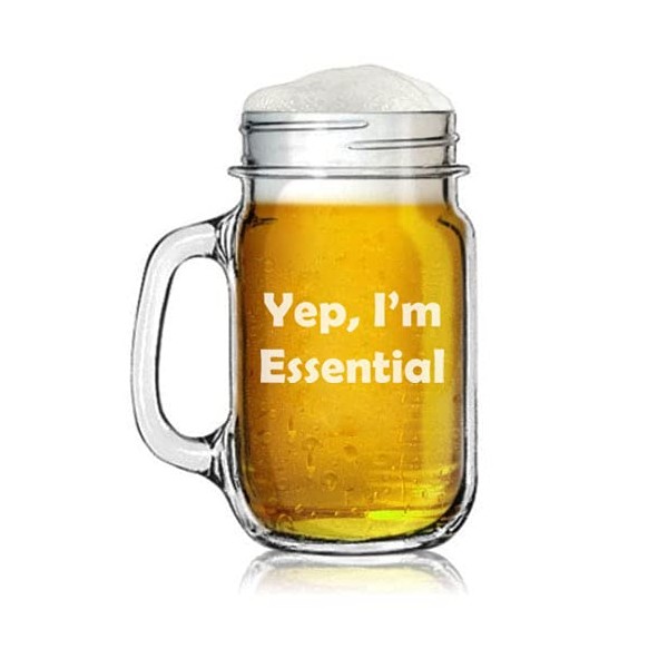16oz Mason Jar Glass Mug w/Handle Yep, I'm Essential Funny