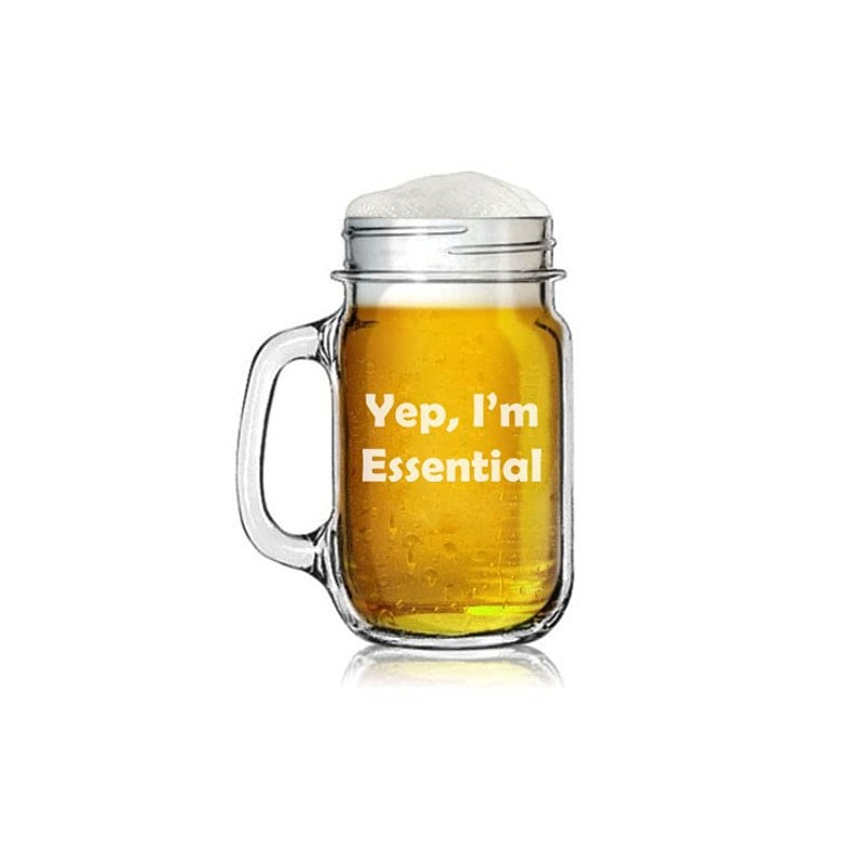 • 16oz Mason Jar Glass Mug w/Handle Yep, I'm Essential Funny