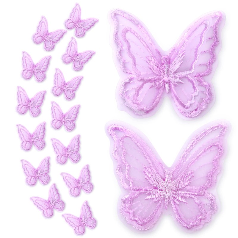 16pcs Butterfly Lace Trim, Butterfly Decor Applique Patches,Double Layers Organza Butterfly Lace Fabric Embroidery Sewing Lace DIY for Wedding Bride Hair Dress Hat Accessories(Purple)