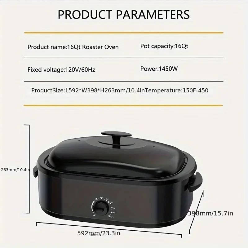 16QT 1450W Electric Roaster Oven Large Capacity Turkey Roaster Cooking Baking US