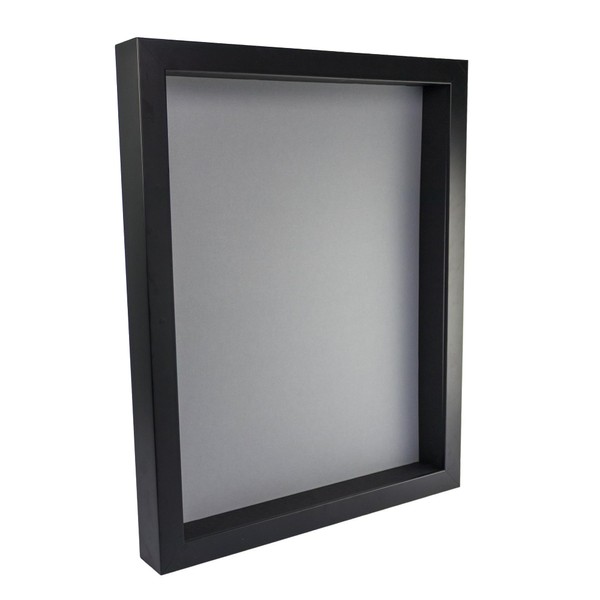 16x20 Shadow Box Frame Black Wood with a 1 3/4" Usable Display Depth Includes a Grey Acid-Free Backing Board, UV Resistant Acrylic, and Hanging Hardware