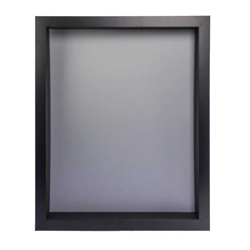 - Black wood shadow box frame with interior dimensions of 16x20 inches with 1 3/4 inches of usable depth. UV-resistant, frame-grade acrylic protective front.