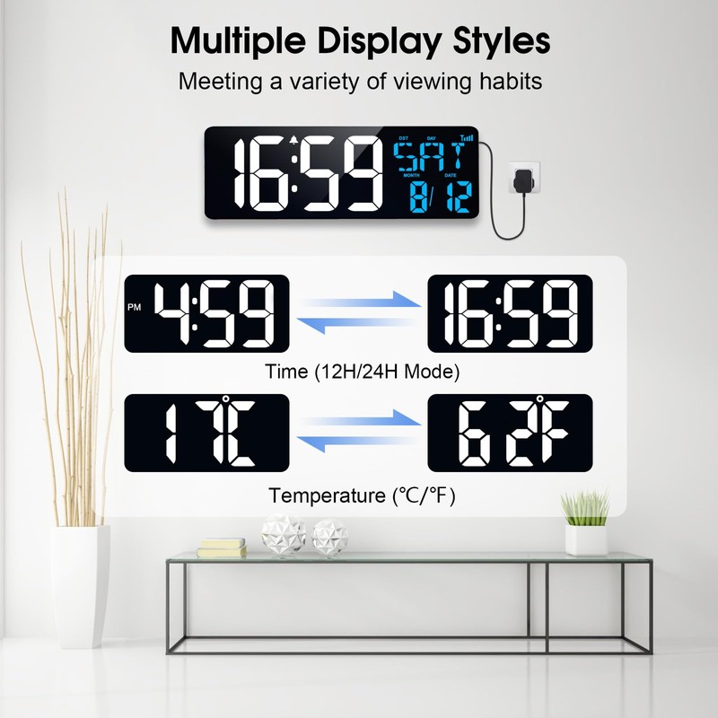 - 【 Multi-function & Remote Control】- This digital clock large display is a versatile powerhouse, combining clock, alarm, and timer functionalities to suit various needs. For convenience, it also comes with a remote control that operates up to 32 feet away, making it easy to use even when mounted on a wall.