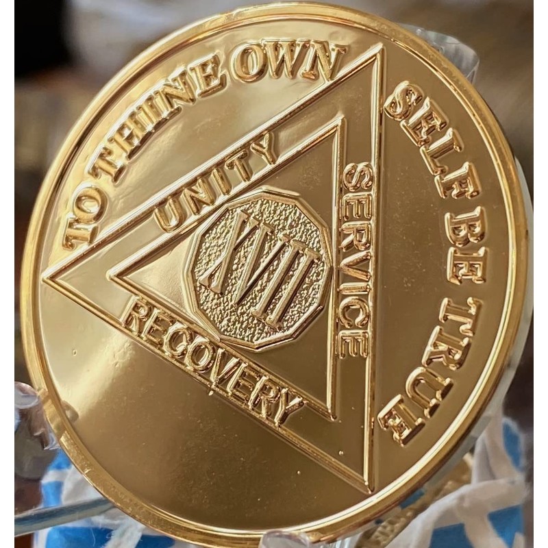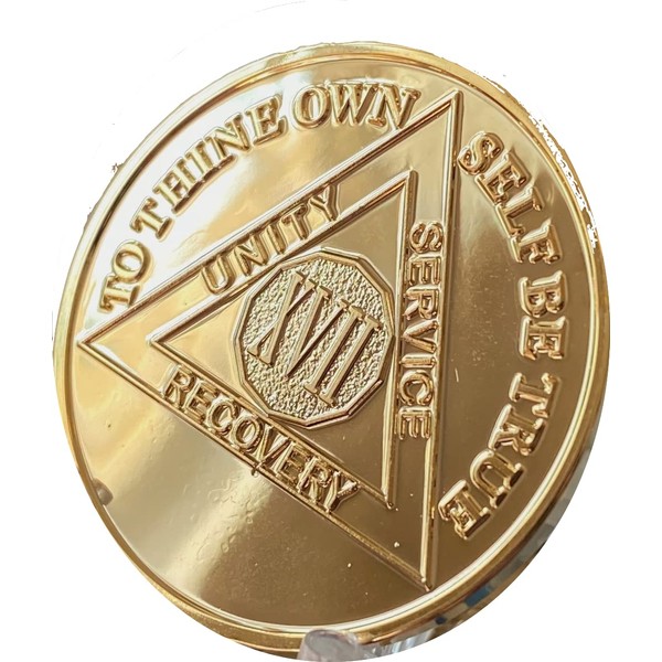 - 17 Year AA Medallion 22k Gold Plated Sobriety Chip