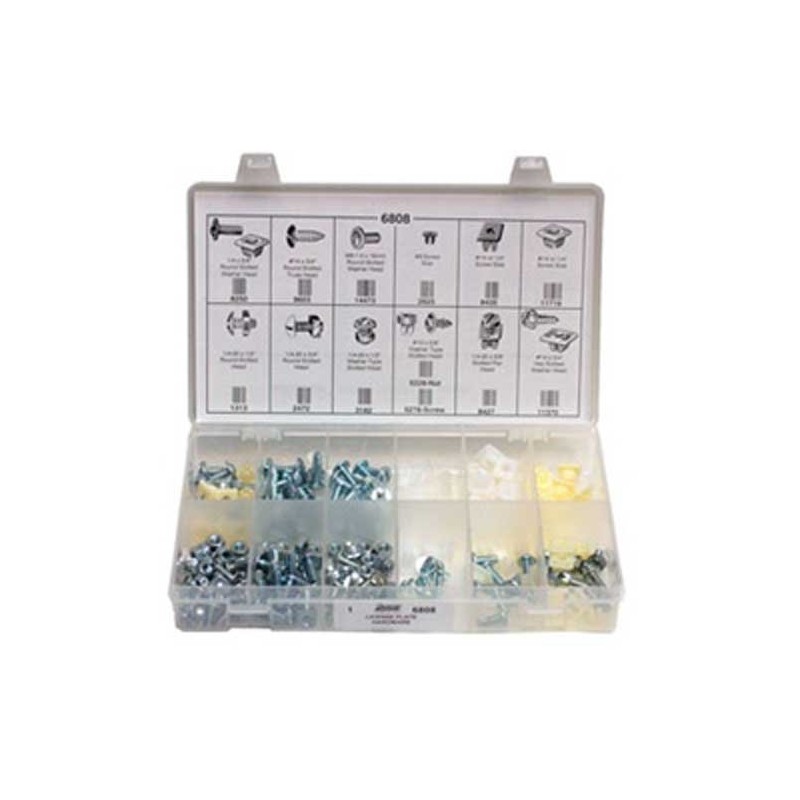 * License Plate Hardware * 12 Varieties - 171 Pieces * Contains the following part numbers: A1313, A2472, A2625, A3182, A5228, A5278, A8250, A8427, A8435, A9603, A11370, A11719 & A14473