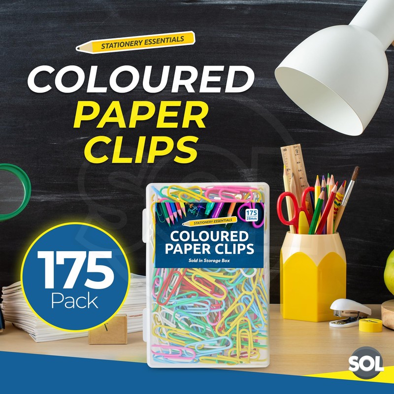 175pk Coloured Paper Clips 28mm in Storage Box | Small Paperclips Coloured | Paper Clips Metal in Storage Box | Small Paper Clips | Durable & Vibrant Paperclip for Organizing & Office Needs