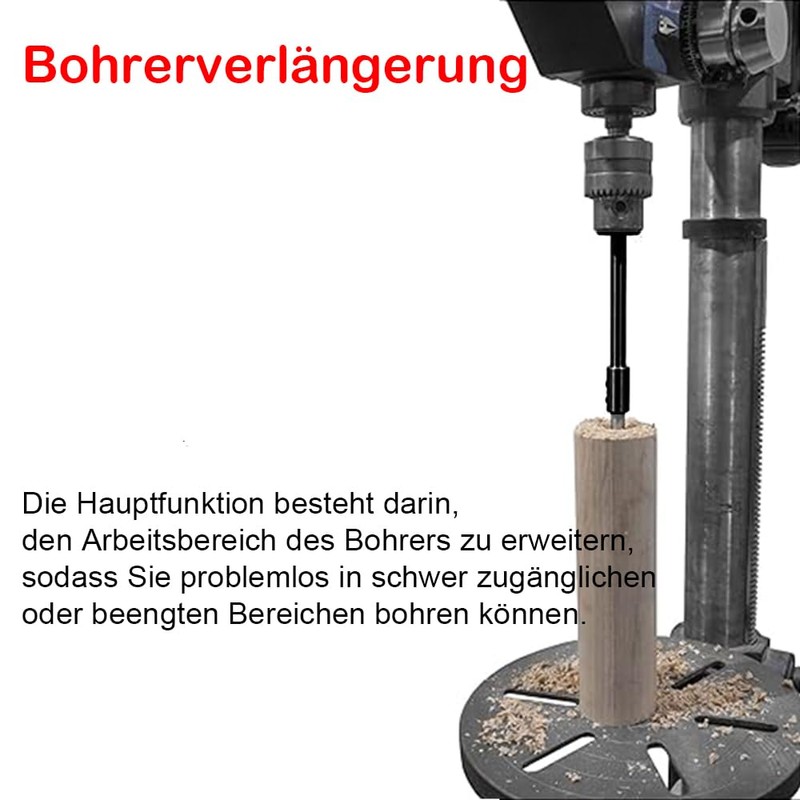 Extended working area: the main function of the drill extension is to expand the working range of the drill, so you can easily drill in hard-to-reach or space-restricted areas. This feature greatly expands the workspace and increases flexibility and efficiency.