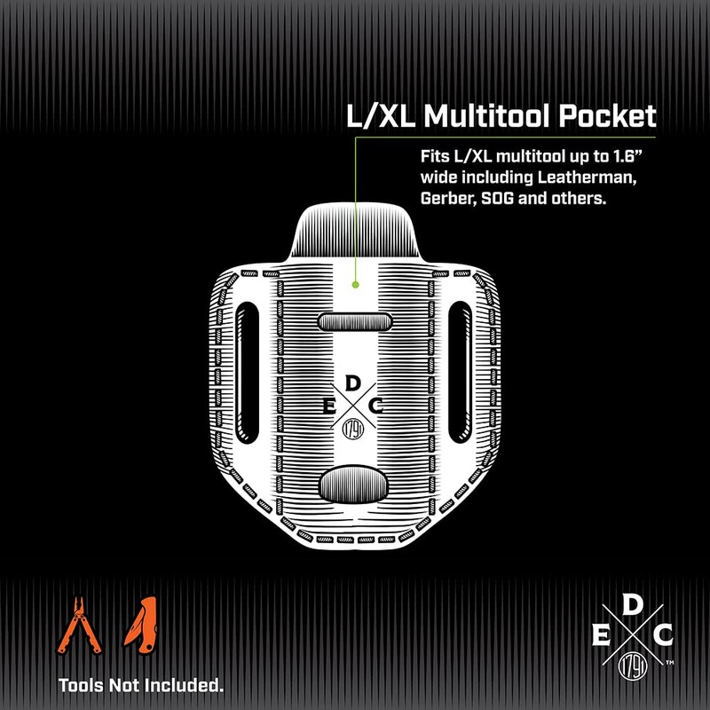 • [ Multitool Pocket ] Fits tools up to 1.6" wide including Heavy Duty Leatherman Super Tool 300, Surge, OHT, MUT | Gerber Truss, Multi-Plier 800, Splice, Vise, Center-Drive Plus | SOG Poweracess, Flash MT and similar size tools. (TOOLS NOT INCLUDED)