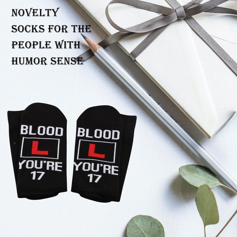 17th Birthday Driving Gift 17 Year Old Gift for Her Him Hello 17 Bloody L You're 17 Socks L Plate Socks (L, Bloody L CA)