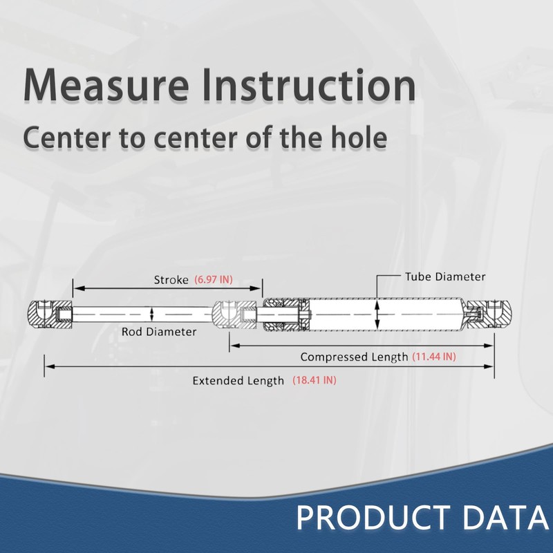 - 【Product Data】Extended Length : 18.41 IN ; Compressed Length : 11.44 IN ; STROKE : 6.97 IN