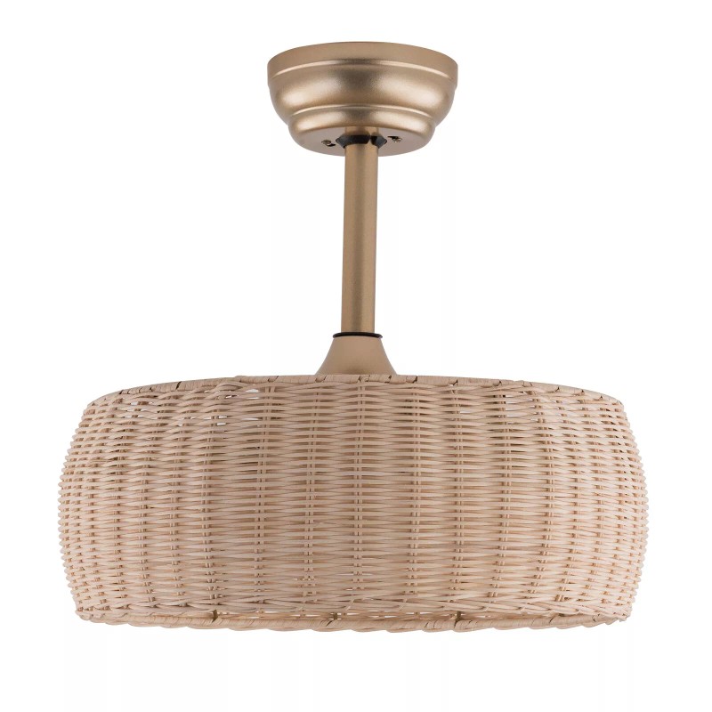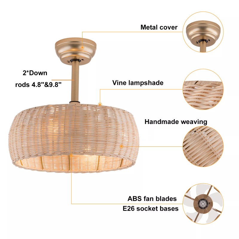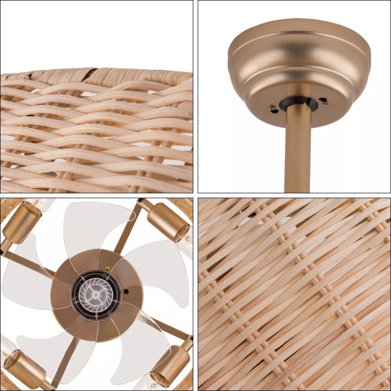 18.5" Rattan Caged Ceiling Fan Light Bamboo Fan Chandeliar for Bedroom w/ Remote