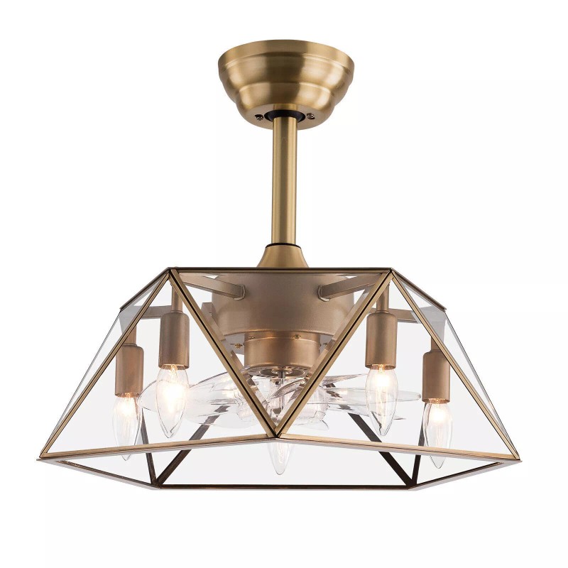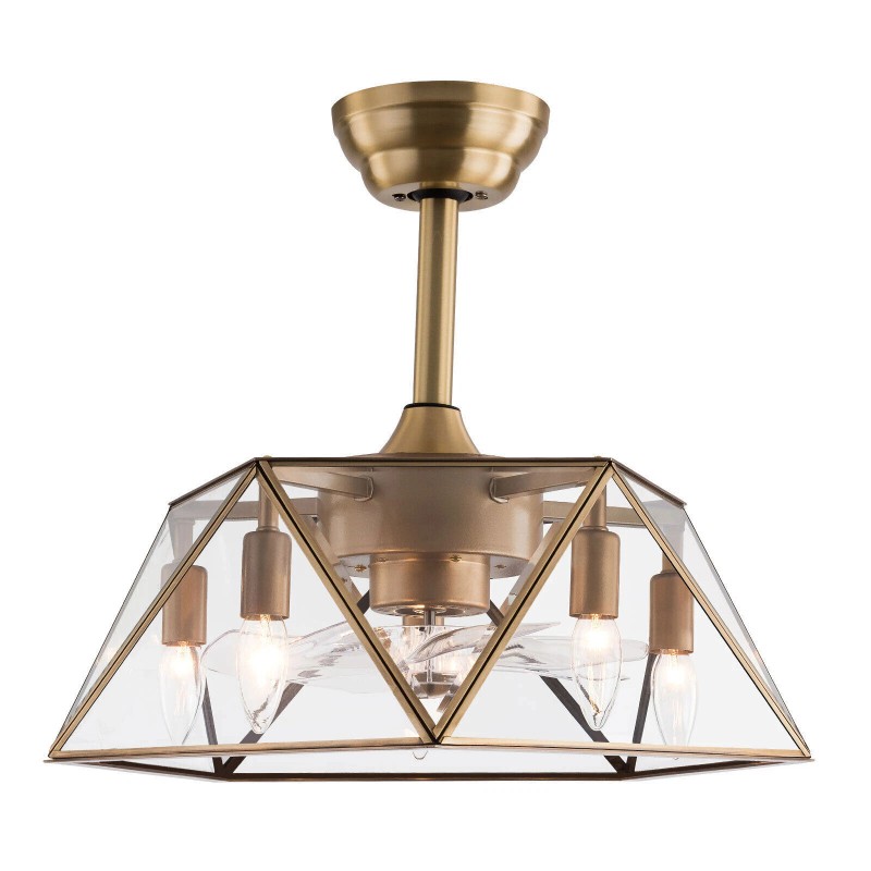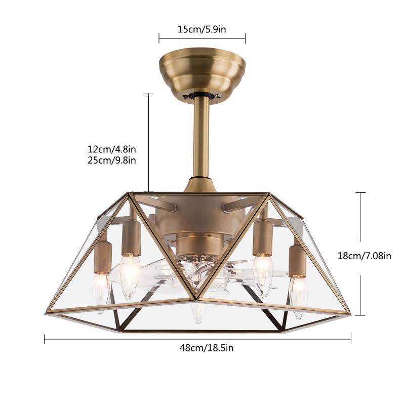 18" Caged Ceiling Fan Light Adjustable Speed For Living Room W/ Remote Control
