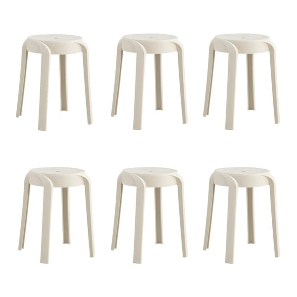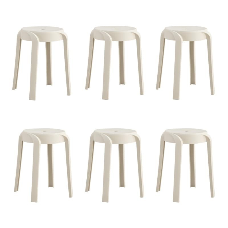 18 Inch Plastic Stack Stool (Set of 6) - Round Stackable Chair for Students, Indoor, Outdoor, Home, Office, Classroom - Waterproof, Portable, Beige