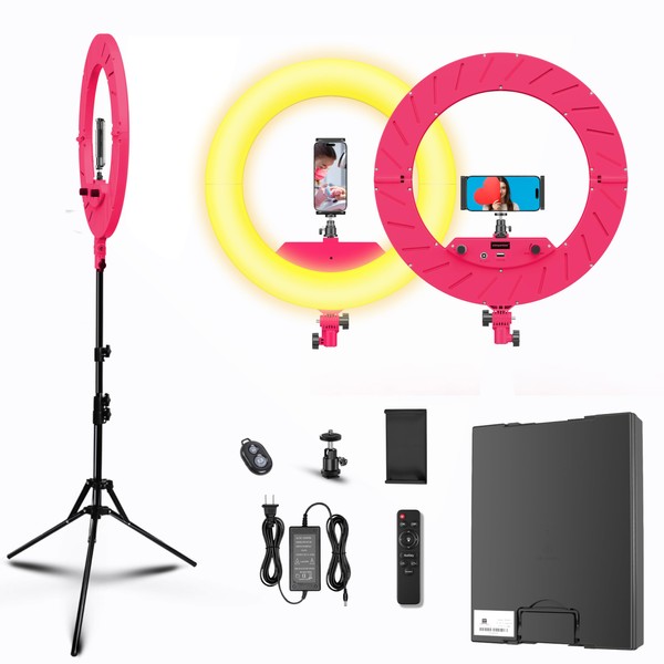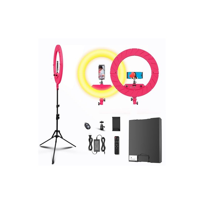 • Please note: JJ JIANJIN brand 18 INCH RING LIGHT Use engineering plastic suitcase (multifunctional portable suitcase can hold all the accessories, including the stand, please open the box according to the Operation steps above the box). After our test, you need to use 2 lights at the same time, the light distribution can be more uniform, and you can make perfect pictures and videos. We have black pink amd white ringlght light for you to choose from.