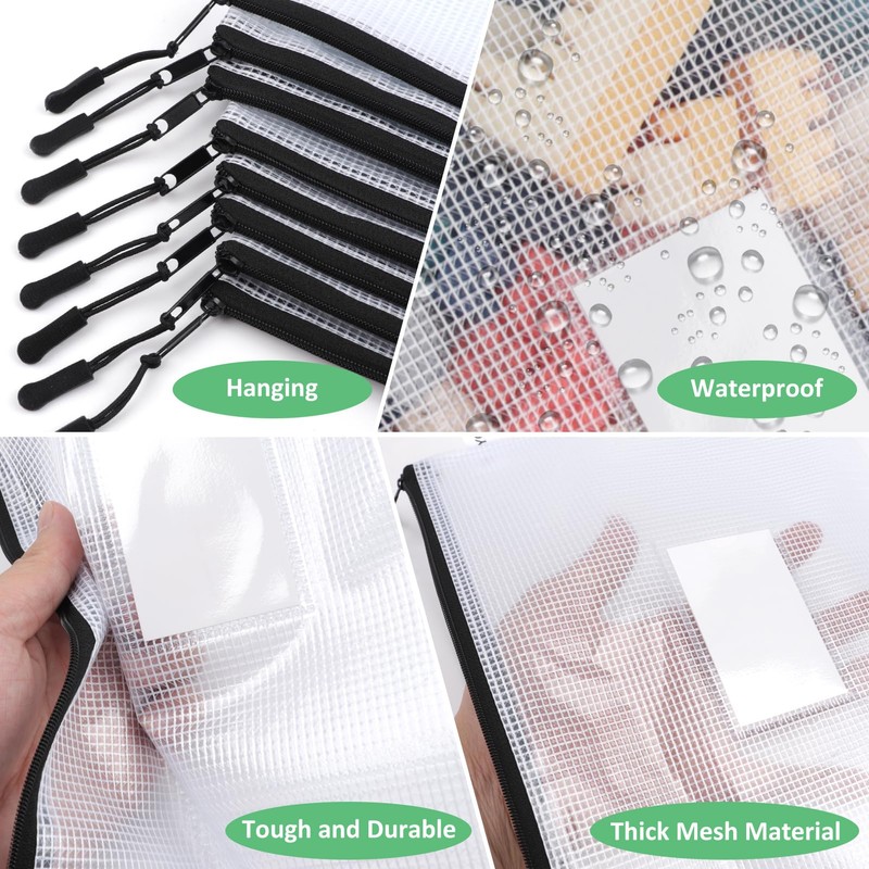18 Pack 8 size Mesh zipper pouch bags, Zipper Bags with Label Pocket,File Bags for Classroom Organization,Zipper Pouches of office supplies,Puzzles, Board Game Storage