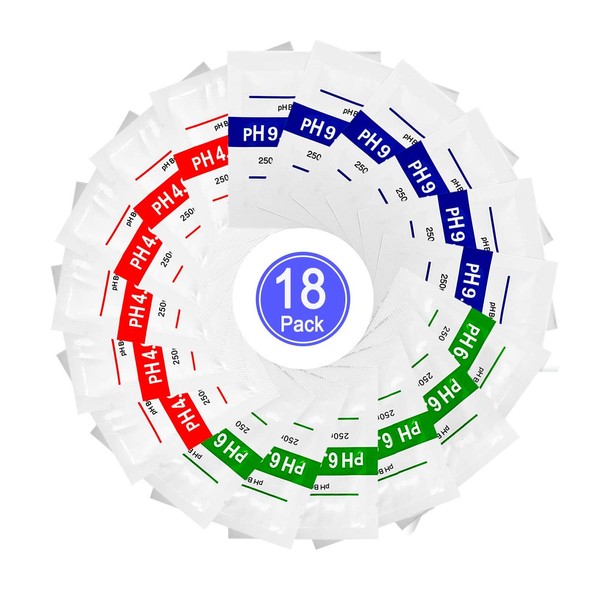 - 18 pack: 6 packets of pH 4.01 Solution powder, 6 packets of pH 6.86 Solution powder, 6 packets of pH 9.18 Solution powder, cost-effective and flexible for using.
