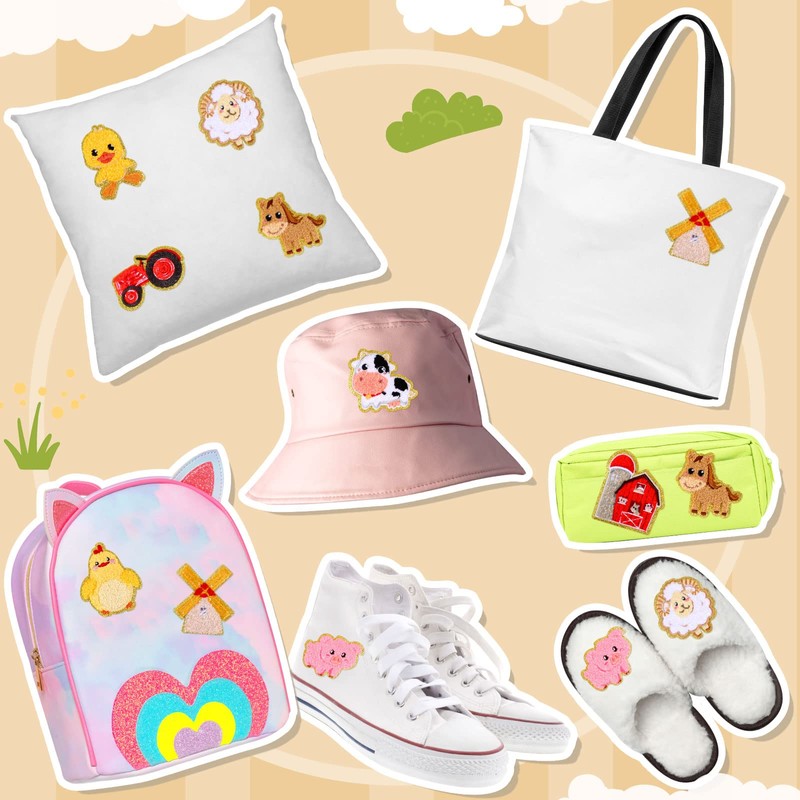 18 Pcs Animals Iron on Patches for Kids Cartoon Patches Appliques Farm Self Adhesion Chenille Patches Varsity Patch Repair Embroidered Patches for Pants Backpacks Jackets Gift(Farm Style)