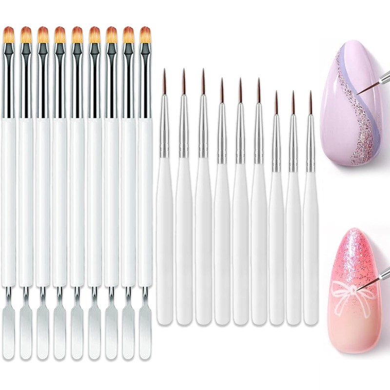 18 PCS Nail Art Brushes Nails Art Liner Brushe 2 in 1 Polymer Gel Dual Ended Tool Pull Line Painted Pen Nails Dotting Tools Set for DIY Gel Nail Extension Nail Professional Painting Drawing