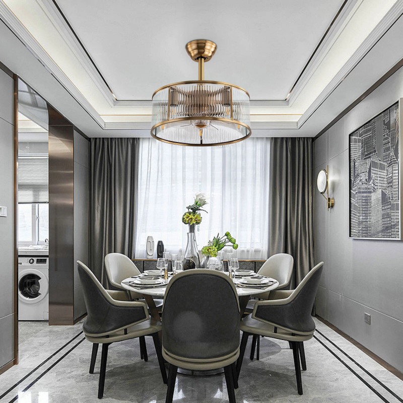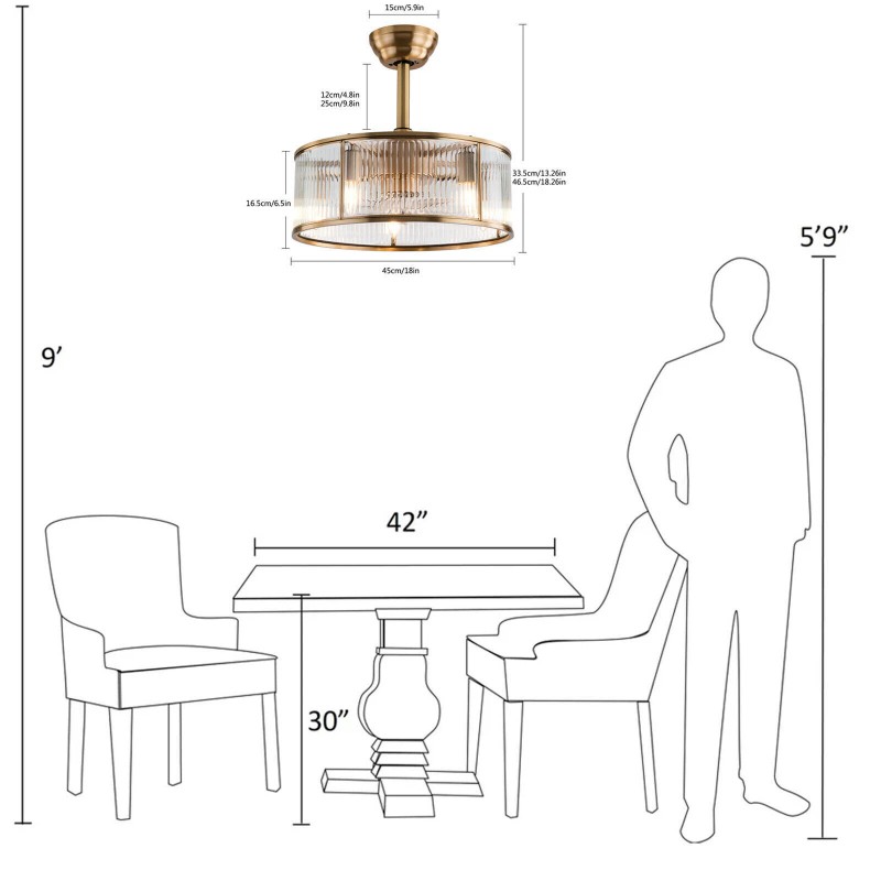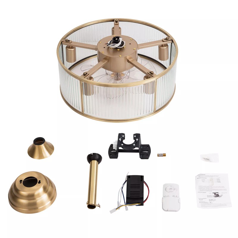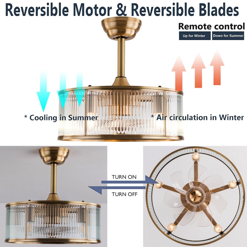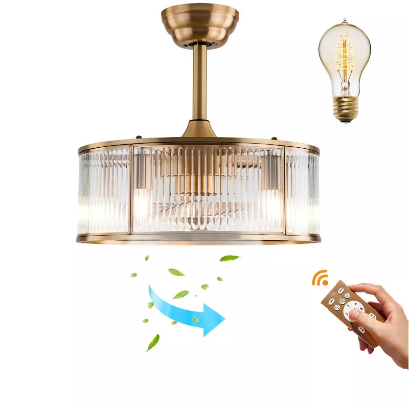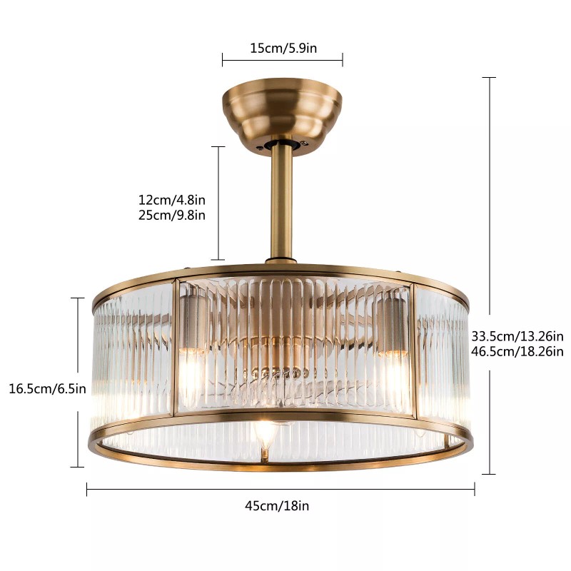 18" Retro LED Ceiling Caged Fan Light Chandelier Lamp With Remote Control 40W US