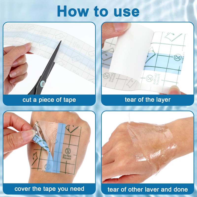 - EASY TO USE: The waterproof tattoo bandages has 3 layers, which are PET backing, PU film, release paper. Scrap the first layer (white release paper) and put the second layer on the surface of the skin, and then tear off the top layer. Flexible and stretchable, which allows it to be placed anywhere on the body.