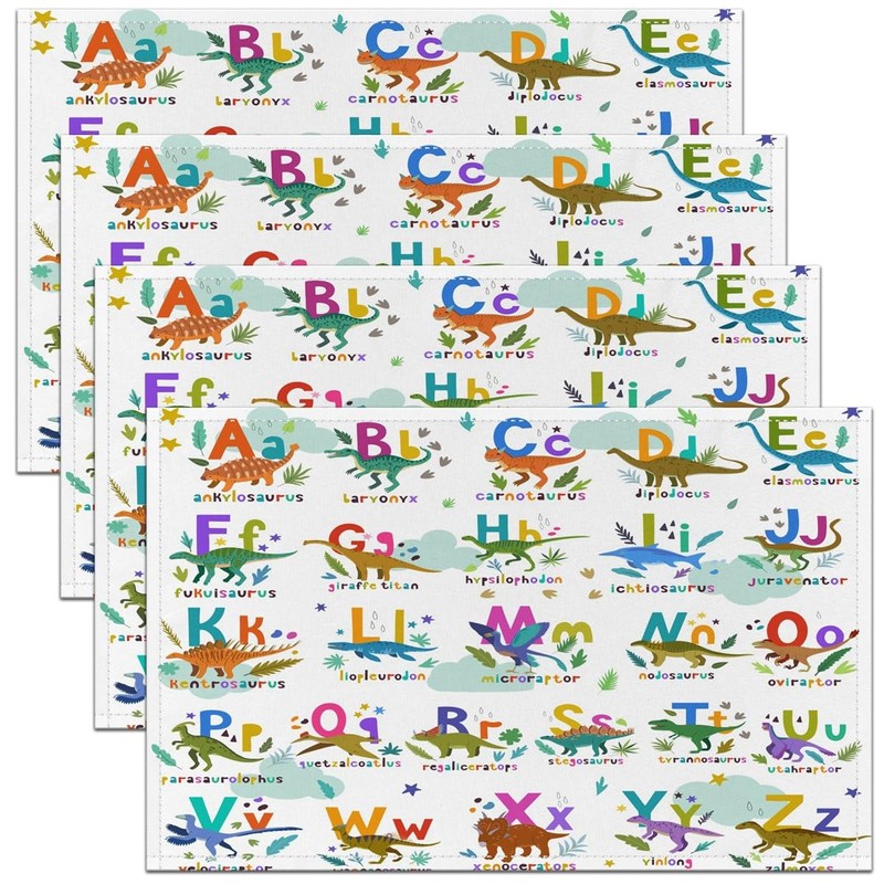 18"x12" Dinosaur Alphabet Table Place Mats, 3D Dino Print Placemats Set of 4 Women Men Jungle Dino Placemat for Kitchen Dining Table Decor Indoor Outdoor Wild Animal