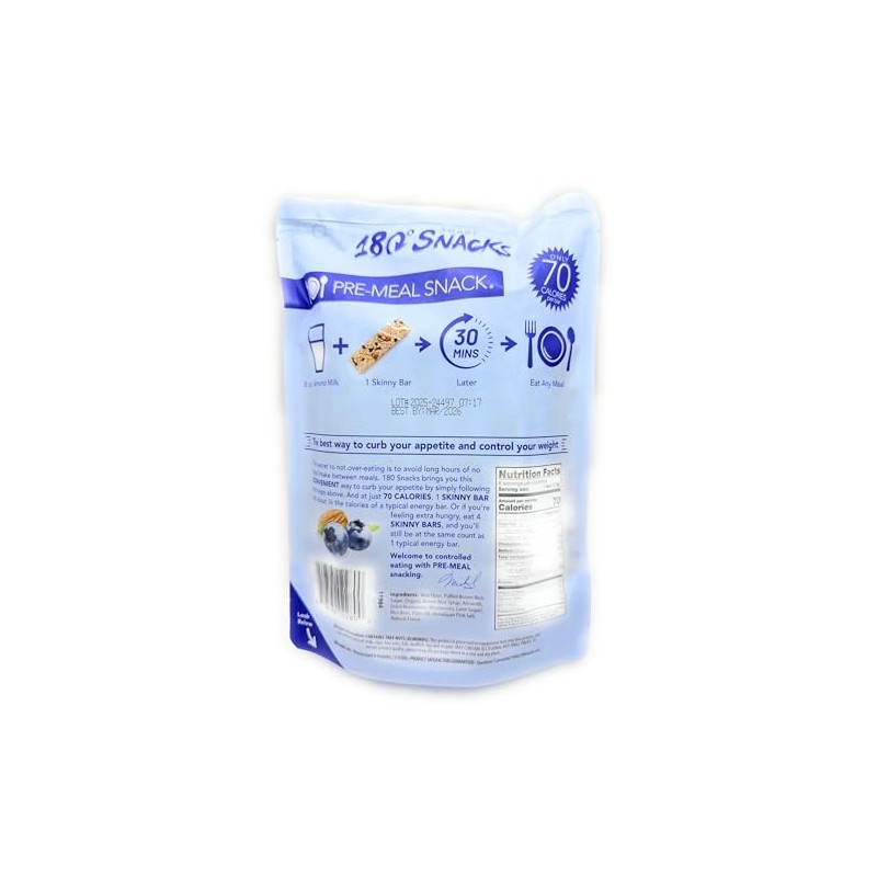 180 Snacks, Skinny Rice Bars, Almond & Blueberries, 6 Bars