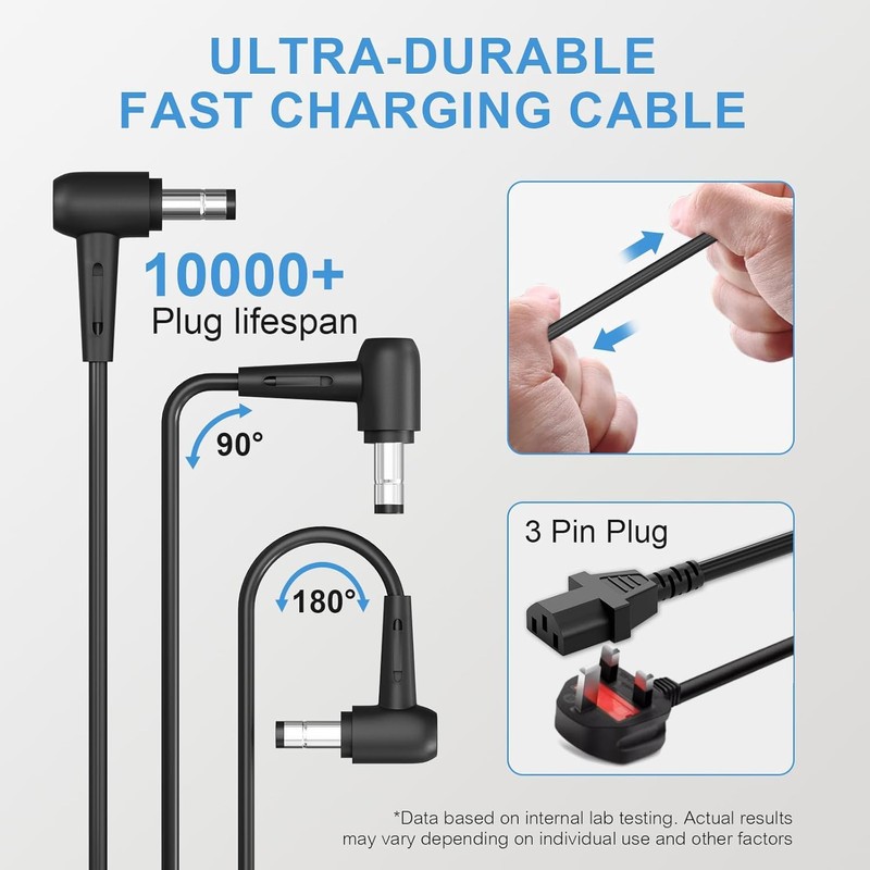 - 【Specification】Input: 100-240V, 50-60Hz, Output: 19.5V, 9.23A, 180W. Connector Size: 5.5mm*2.5mm