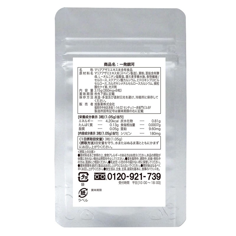旭製薬 一発銀河 182GINGA マリアアザミ オルニチン 亜鉛 サプリメント (9粒入)