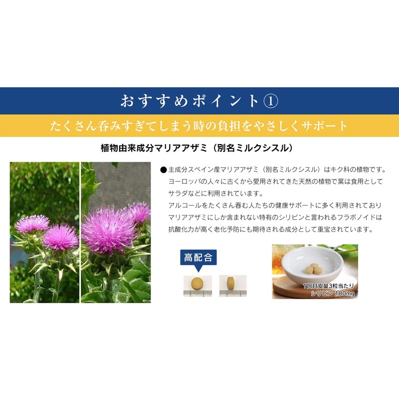 - ヨーロッパ産キク科の植物マリアアザミ別名ミルクシスルという天然ハーブを仕様しています。以下のような方におすすめします。