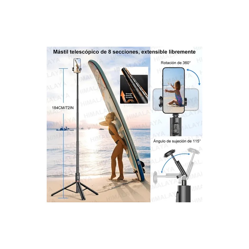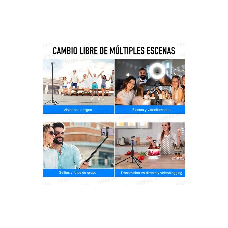 Este producto combina inteligentemente las funciones de un palo para selfies y un trípode. Hay un mango telescópico para que una sola persona pueda tomar selfies fácilmente, y el diseño de patas plegables permite cambiar rápidamente al modo trípode con solo presionar un botón. Ya sea que estés tomando fotos personales, grabando vlogs o tomando fotos grupales o fotos con lapso de tiempo, puedes hacerlo todo con una sola cámara.