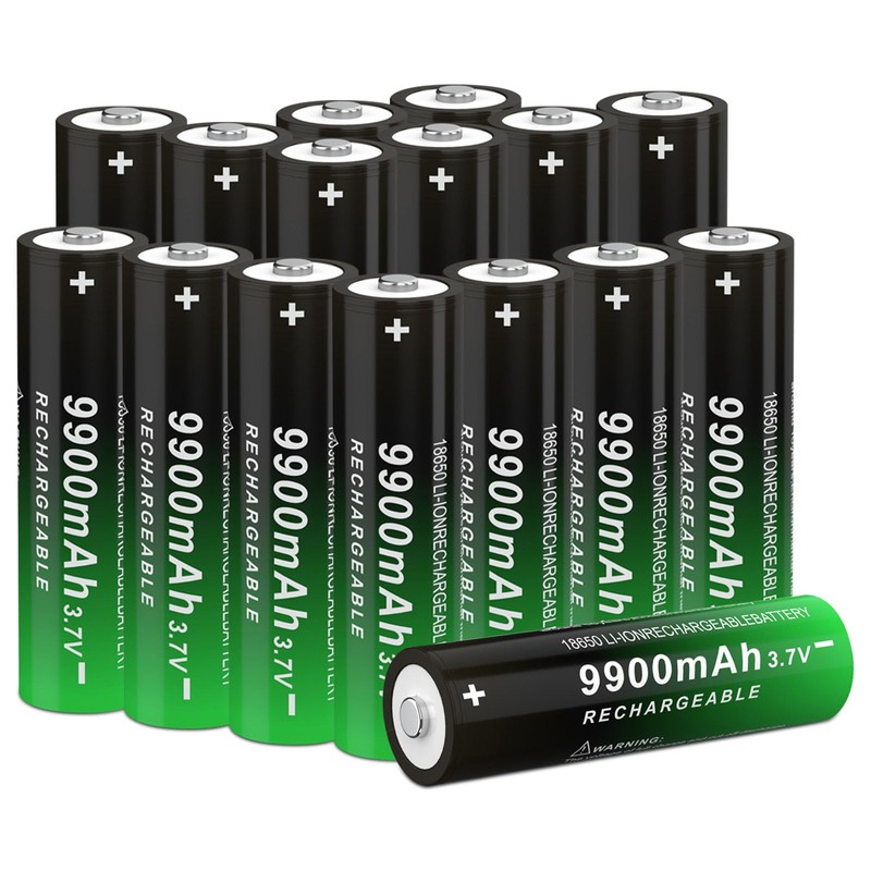 18650 3.7V Lithium Rechargeable Battery with 18650 9900mAh Button Top Batteries Design Tool for Camera & Flashlights, Clocks, Toys House Use -16 Pack