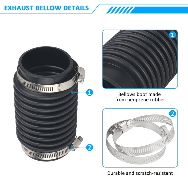 - Packaging content: Includes 1 corrugated pipe, 2 marine grade stainless steel clamps