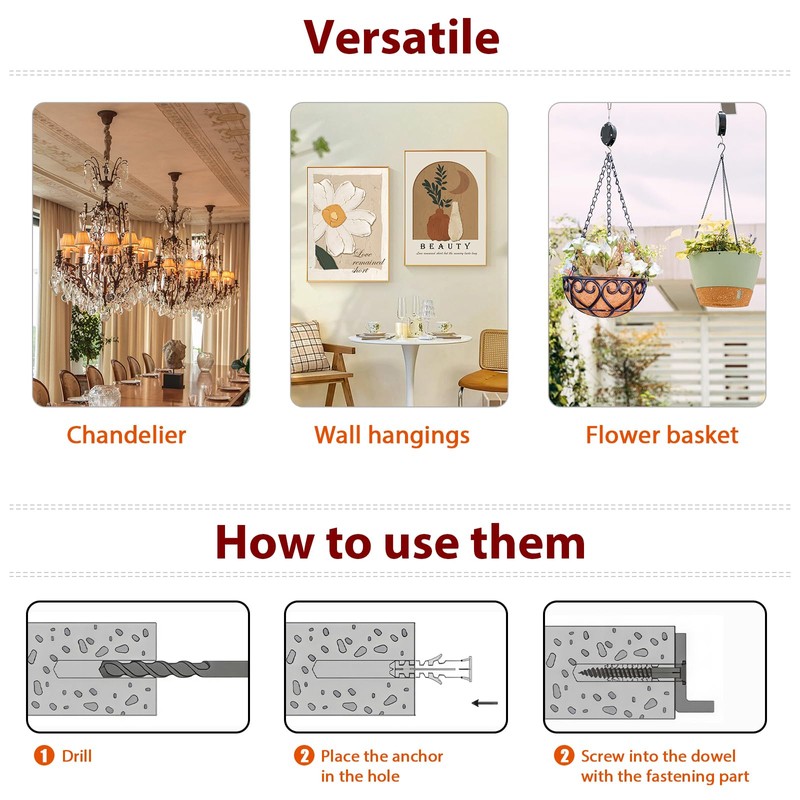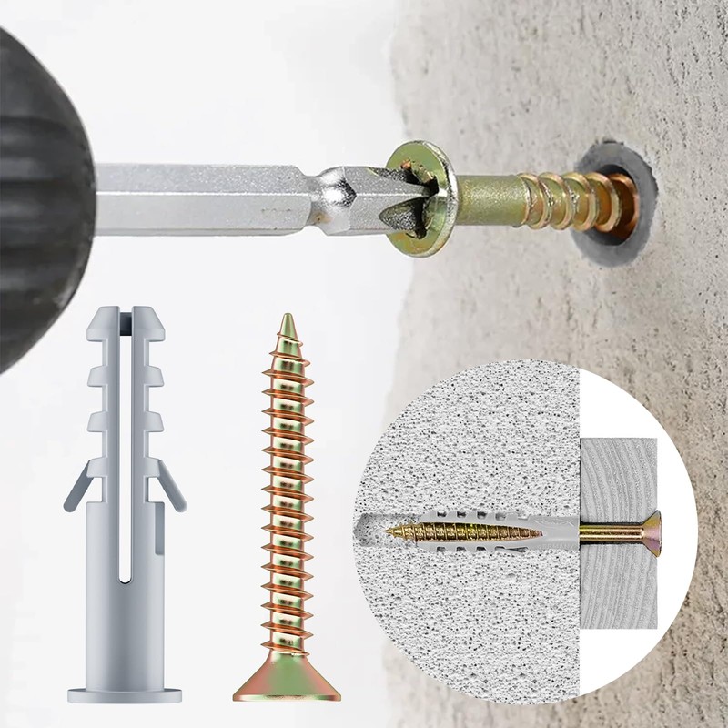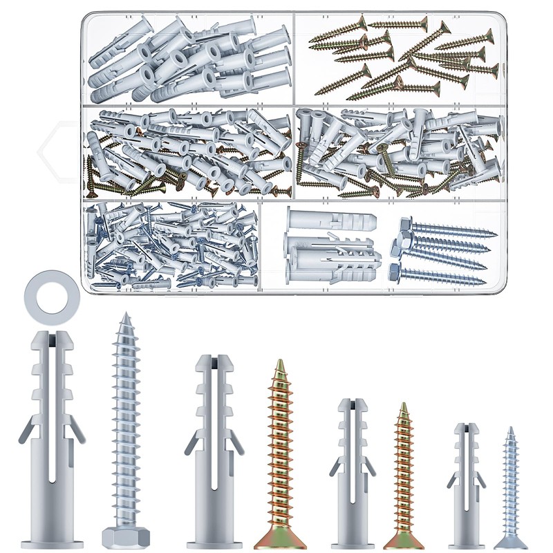 - Widely Used: Wall plug screw combination, strong fastening ability, can help you hang mirror, curtain rail, decorative pictures, photo frames, towel rack and lightings on various wall surfaces, such as brick walls, concrete walls, dry walls and wooden walls. Thanks to its reliable quality and durability, you can use it to secure your hanging objects with confidence.