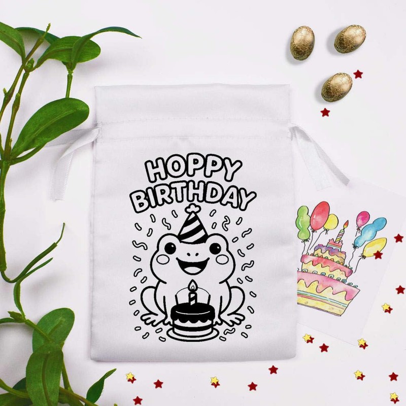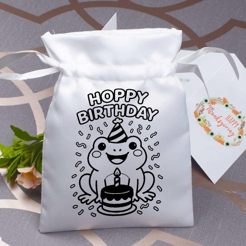 18cm 'Happy Birthday Frog' Satin Drawstring Bag/Pouch (SB00124002)