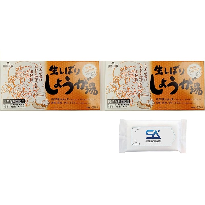 自然王国 生しぼりしょうが湯 18g×20袋入 2箱セット オリジナルウェットティッシュ付き(s2)
