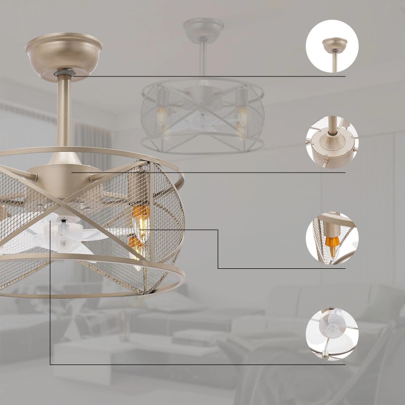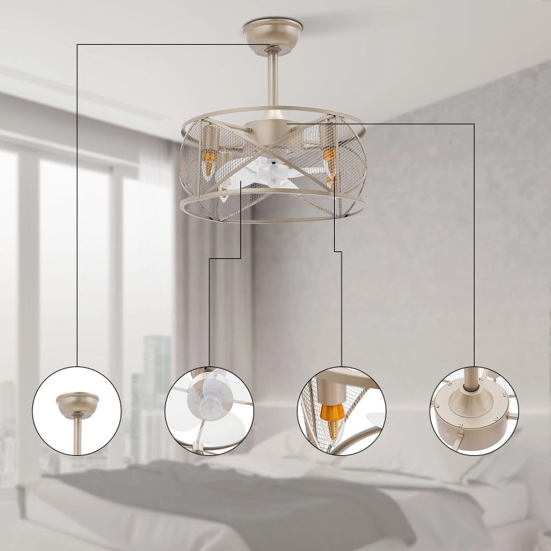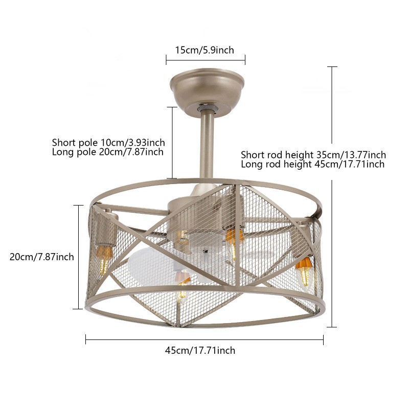 18inch 6 Speeds Ceiling Fan with Lights 4*E26 Chandelier w/ Remote 2H Timing