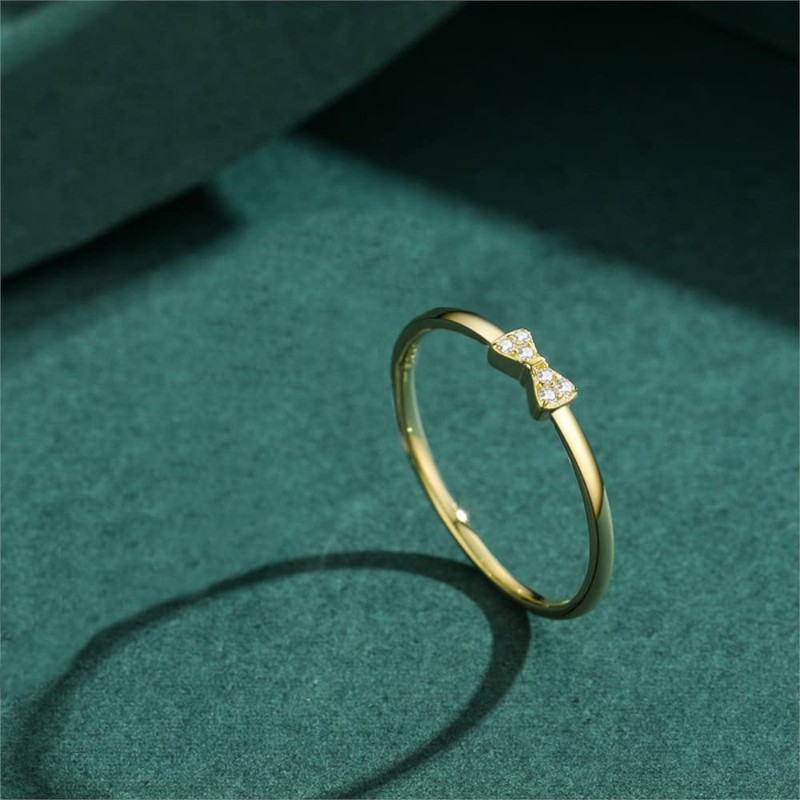 18K Gold Plated 925 Sterling Silver Pave Ribbon Bow Tie Knot Ring Stackable Wedding Engagement Band with Cubic Zirconia, Nickle Free Hypoallergenic for Sensitive Skin with Gift Box, Non-Precious Metal Gemstone, Cubic Zirconia